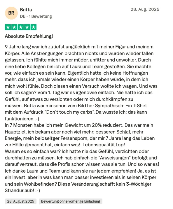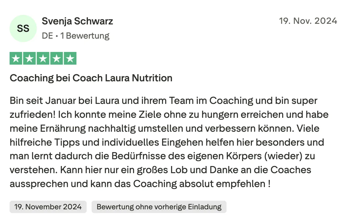 von Coach Laura Nutrition. Über 1.000 Frauen erfolgreich gecoacht. Laura Zimmermann hilft Frauen, ihren Körper nicht mehr als Feind, sondern als Verbündeten zu sehen, um endlich gesund, stark und voller Wohlbefinden zu leben.